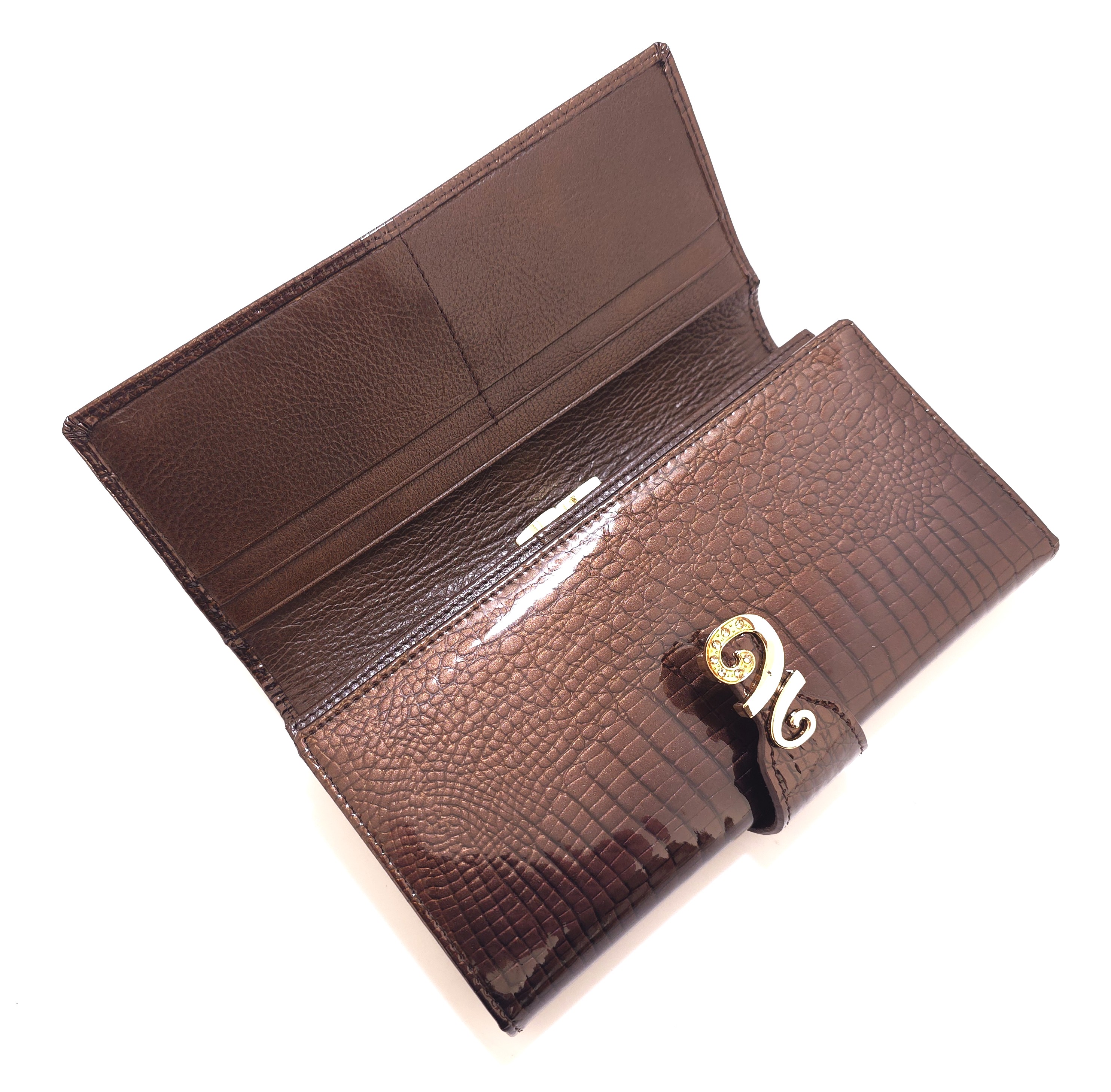 - Duży portfel z motywem skóry z węża,wiele przegródek ułatwiających porządkowanie kart i dokumentów.