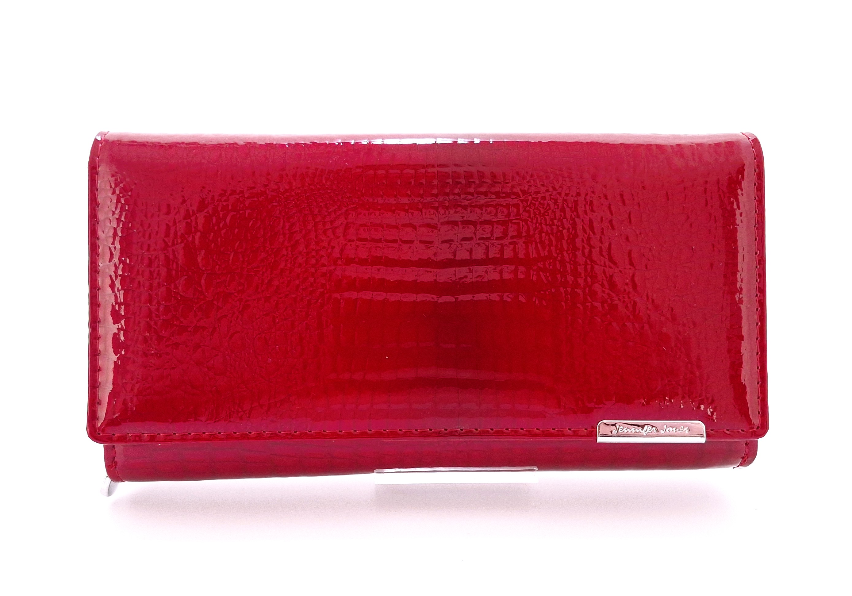 - Elegancki portfel damski z czerwonej lakierowanej skóry. Wyposażony w wiele przegródek. Posiada ochronę RFID.