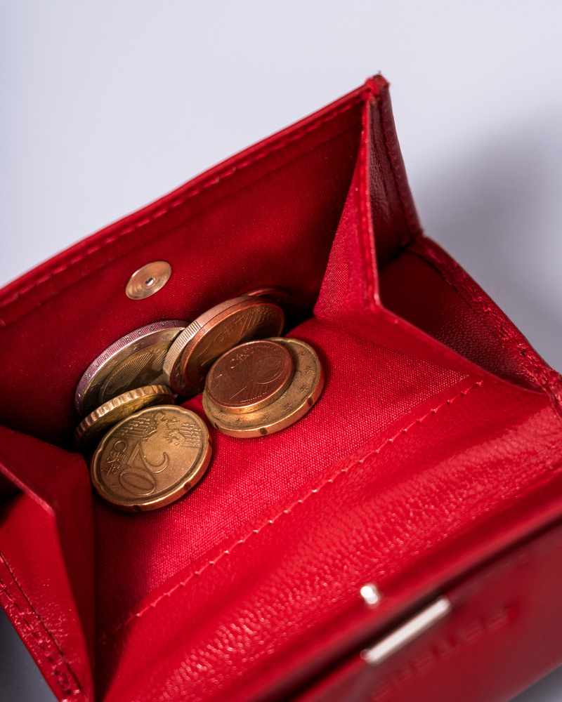 Mały portfel damski Peterson uszyty z bardzo trwałej i przyjemnej w dotyku skóry naturalnej w czerwonym kolorze. Niewielki i kompaktowy rozmiar idealnie zmieści się w małej torebce czy kieszeni. Wewnątrz jedna duża kieszeń na banknoty oraz oddzielna sekcja na bilon zamykana na zatrzask. Z tyłu dodatkowo znajduje sie otwarta kieszonka. Portfel zamykany klapką na zatrzask. Dodatkowo portfel wyposażony w technologię RFID, która zabezpiecza Twoje karty, dokumenty biometryczne, legitymacje, karty zbliżeniowe przed nieautoryzowanym odczytem danych.