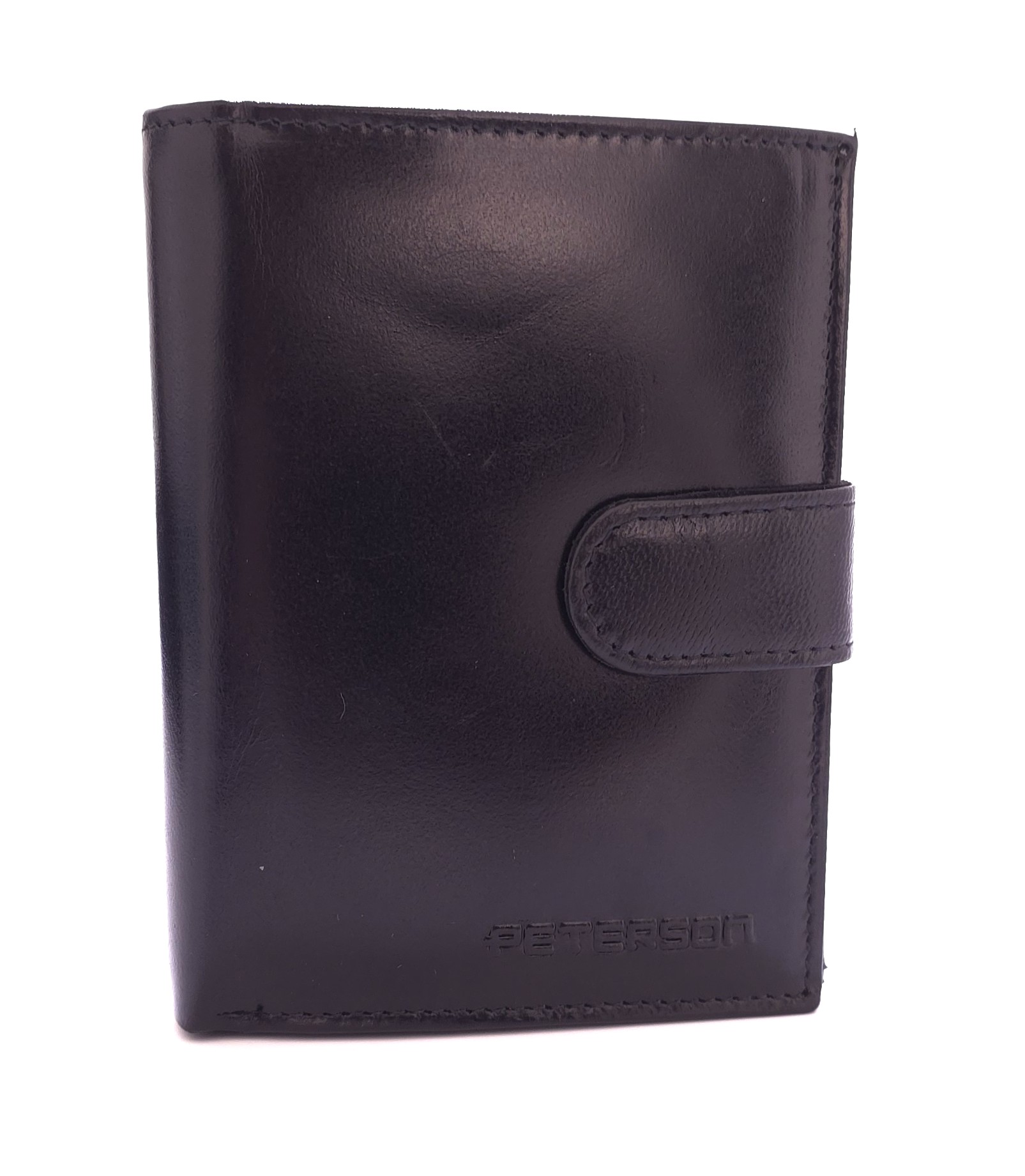 Funkcjonalny portfel męski Peterson odszyty z wysokiej jakości skóry naturalnej. Portfel posiada blokadę RFID, zabezpieczającą Twoje karty płatnicze przed nieautoryzowanym odczytem danych. Model o pionowej orientacji zapinany na zatrzask. Wnętrze dobrze rozplanowane- pomieści karty, wizytówki oraz dokumenty formatu ID. Nie zabrakło także miejsca na dowód rejestracyjny.