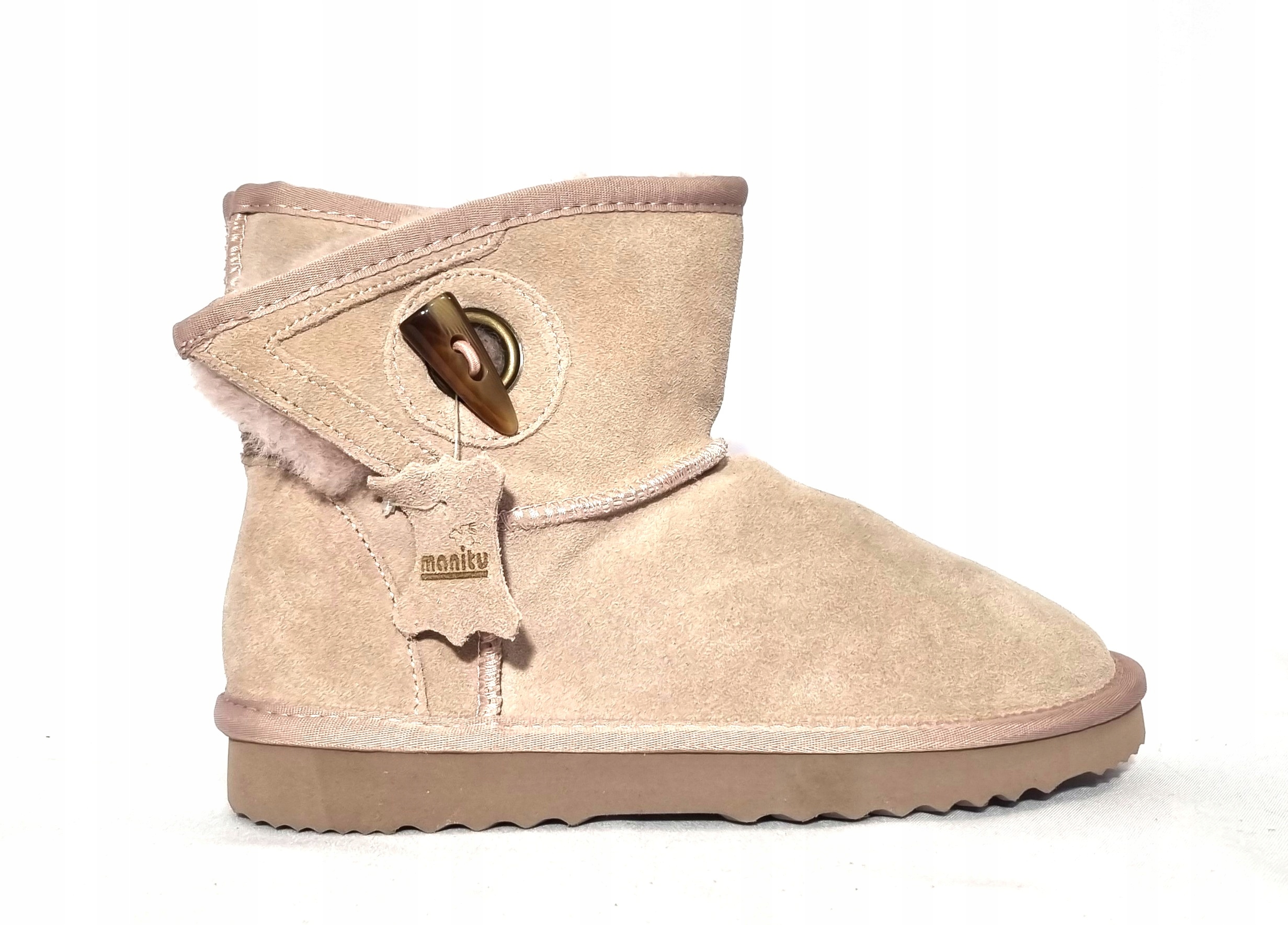 Przedstawiamy państwu bardzo ciepłe śniegowce firmy MANITU ze skóry naturalnej jagnięcej w środku z wełną ,za kostkę na grubej podeszwie. Sprawdza się doskonale na chłodne i mroźne jesienno-zimowe dni.