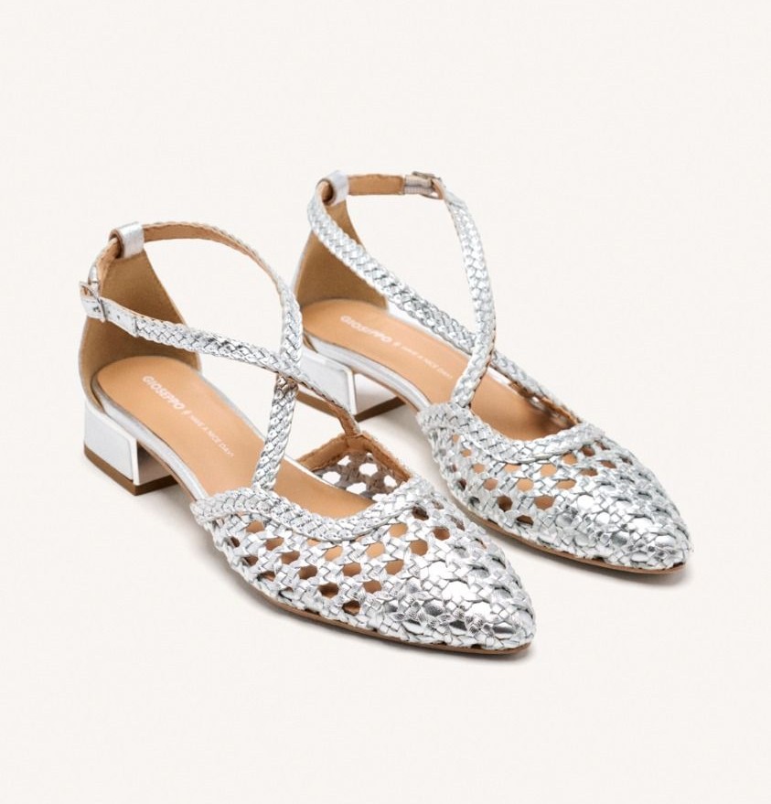 Srebrne baleriny damskie z odkrytą piętą Gioseppo Brillion 75560 r.38