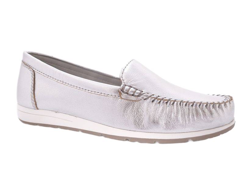 - Eleganckie mokasyny damskie Marco Tozzi ze skóry naturalnej w srebrnym kolorze.