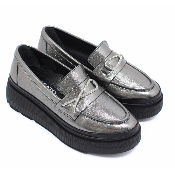 Srebrne mokasyny na platformie  półbuty damskie Boccato 375.1535 r39