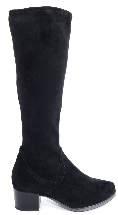 Wykonane z tkaniny zamszowej połączonej ze stretchem. Elastyczny materiał, stanowiący górną część buta, zapewnia perfekcyjne dopasowanie cholewki do kształtu nogi. Wkładka amortyzująca z technologią ON AIR, gwarantuje cyrkulację powietrza podczas noszenia. Dzięki temu Twoje stopy pozostaną w doskonałym stanie, a zmęczenie zostanie zredukowane do minimum. Kozaki zapewniają przyjemny klimat wewnątrz buta, niezależnie od pory roku czy warunków pogodowych. Zapiętek usztywniony. Smukły i okrągły nosek dodaje obuwiu subtelności, co sprawia, że będą one doskonałym uzupełnieniem każdej stylizacji. Szeroki obcas typu słupek o wysokości 5,5cm zapewnia stabilność, ale także wysmukla sylwetkę.