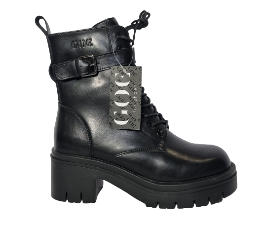 Stylowe botki marki GOE. Wykonane ze skóry naturalnej, wkładka wykonana z wysoko gatunkowego materiału i tworzywa, cholewka wysokości 17 cm, obas 6,5 cm, zasuwane na zamek i wiązane. Gruba podeszwa gwarantuje wytrzymałość i dobrą przyczepność. W kolorze czarnym.
