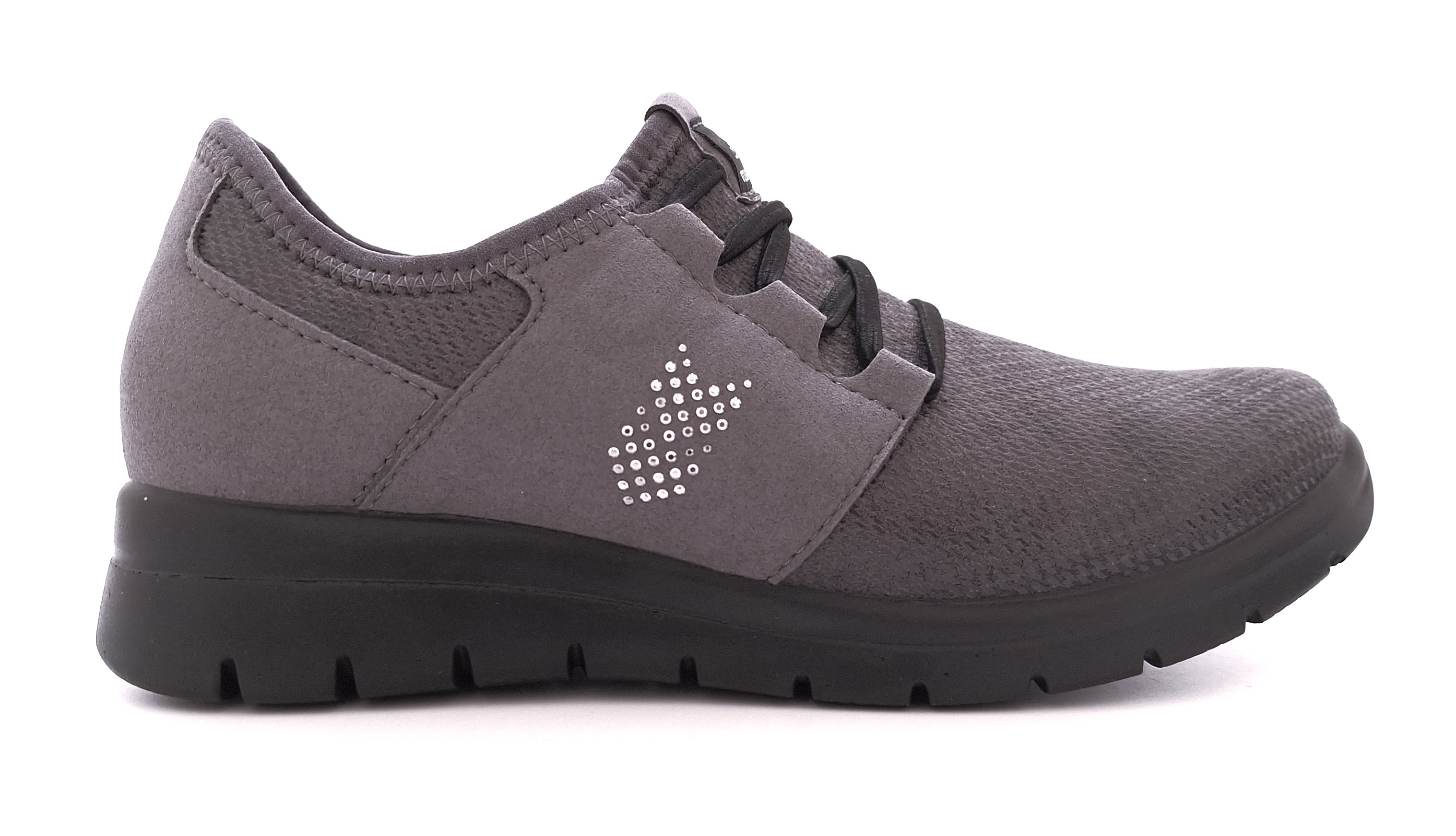 • Wsuwane półbuty damskie w kolorze szarym, wykonane z elastycznej tkaniny. Obuwie posiada wkładkę Memory Foam, dopasowującą się do stopy. Buty są idealnym rozwiązaniem dla stóp z problemami.