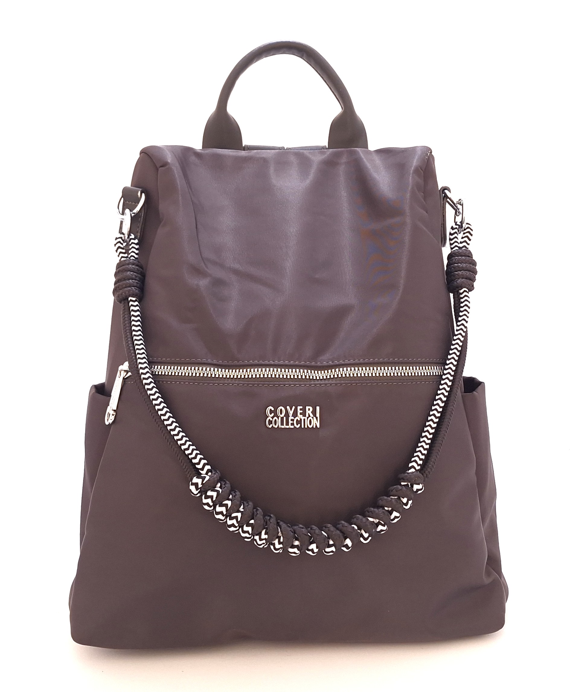 Plecak damski z kieszenią antykradzieżową włoskiej marki Coveri Colection to idealne połączenie modnego designu i praktycznych rozwiązań na co dzień. Dzięki funkcji antykradzieżowej zawartość Twoich rzeczy jest bezpieczna – główna komora otwierana jest wyłącznie od strony pleców, co skutecznie chroni przed dostępem osób niepowołanych. Model wyposażony jest w regulowane szelki oraz wygodną krótką rączkę do noszenia, zapewniając wygodę i komfort przez cały dzień. Praktyczna przednia kieszeń na zamek pozwala mieć drobiazgi zawsze pod ręką. Wykonany z szarego materiału poliestrowego, co gwarantuje jego trwałość i odporność na uszkodzenia.