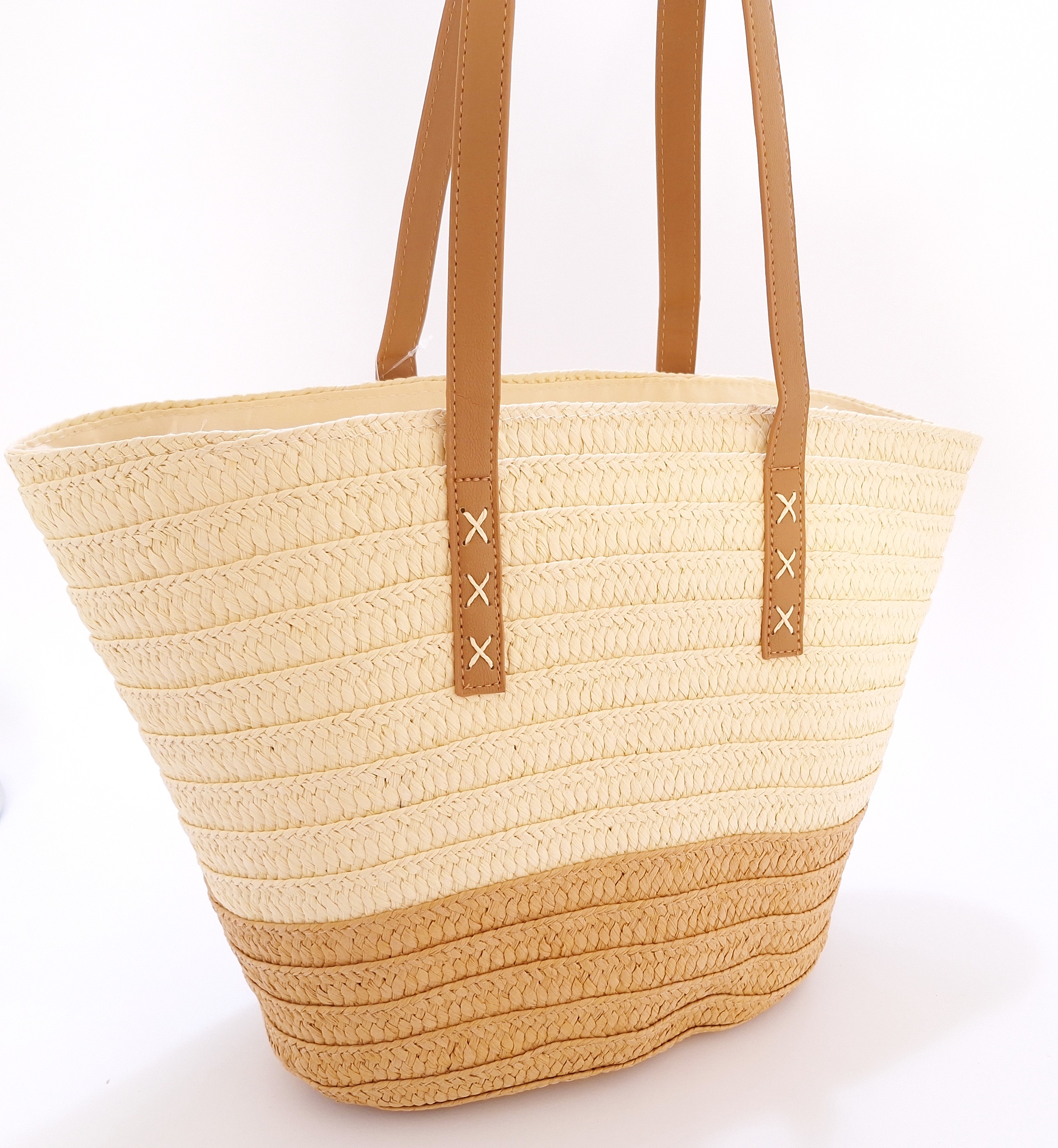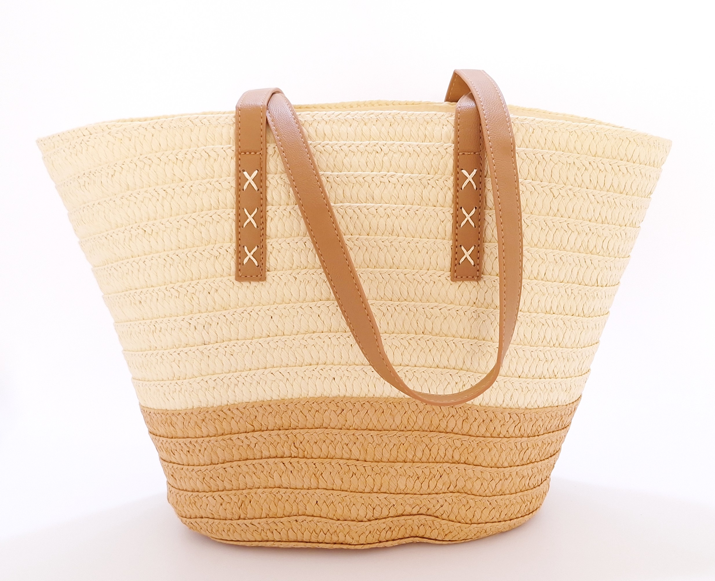 - Damska torebka shopper wykonana z plecionej słomki papierowej.