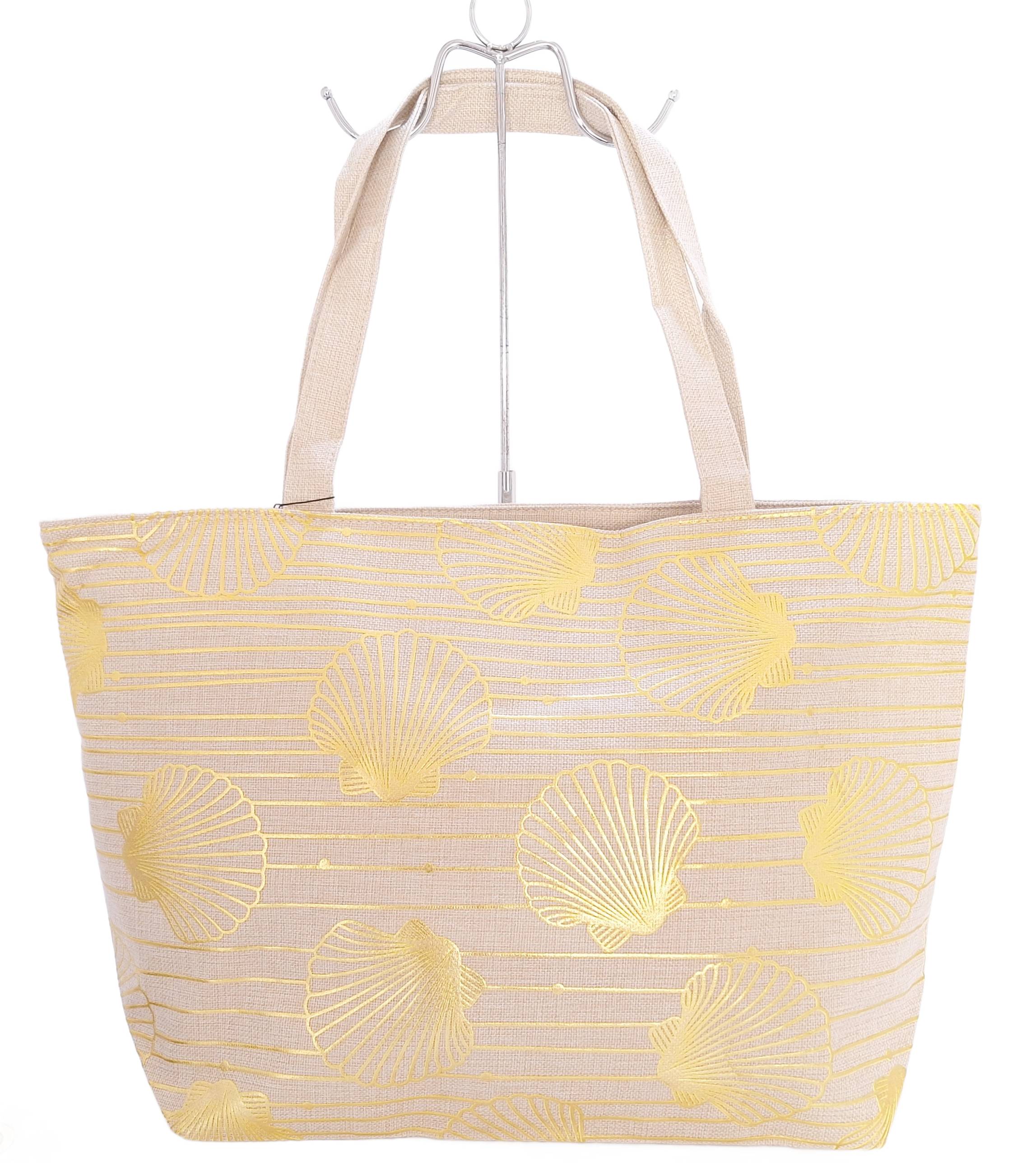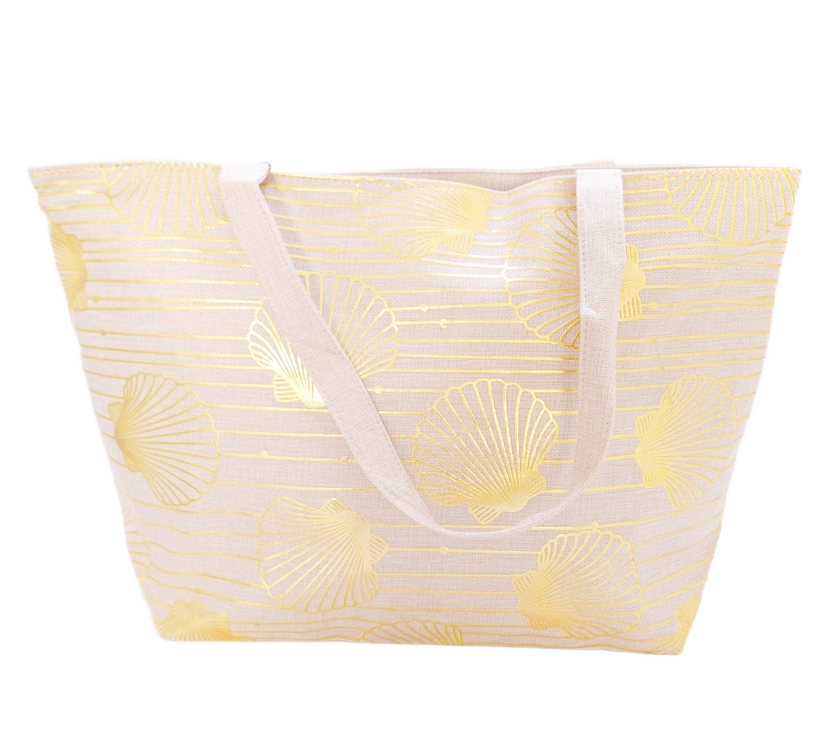 Duża shopperka ze złotymi muszlami – stylowa shopperka na lato