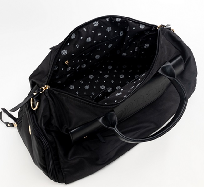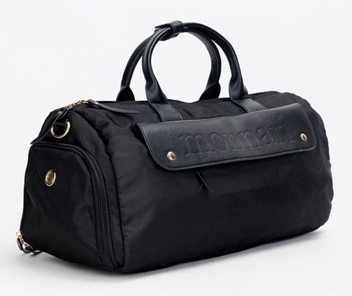Czarna torba podróżna marki Monnari wykonana z tkaniny tekstylnej to praktyczny model, który przyda się na trening, jak i na podróż. Przestronne jednokomorowe wnętrze wyłożone czarną tkaniną w którym znajdują się dwie otwarte kieszonki i jedna zamykana na suwak. Całość zamykana na dwustronny zamek błyskawiczny. Torba posiada krótkie uchwyty no noszenia w dłoni oraz odpinany, szeroki, regulowany pasek z możliwością noszenia jej na ramieniu. Praktycznym dodatkiem jest umieszczony z tyłu uchwyt na którym zawiesisz torbę na rączce walizki.
