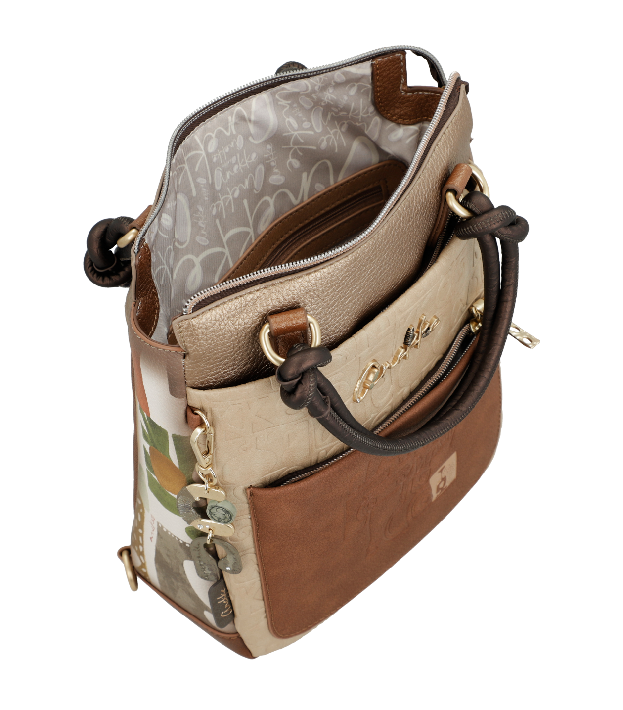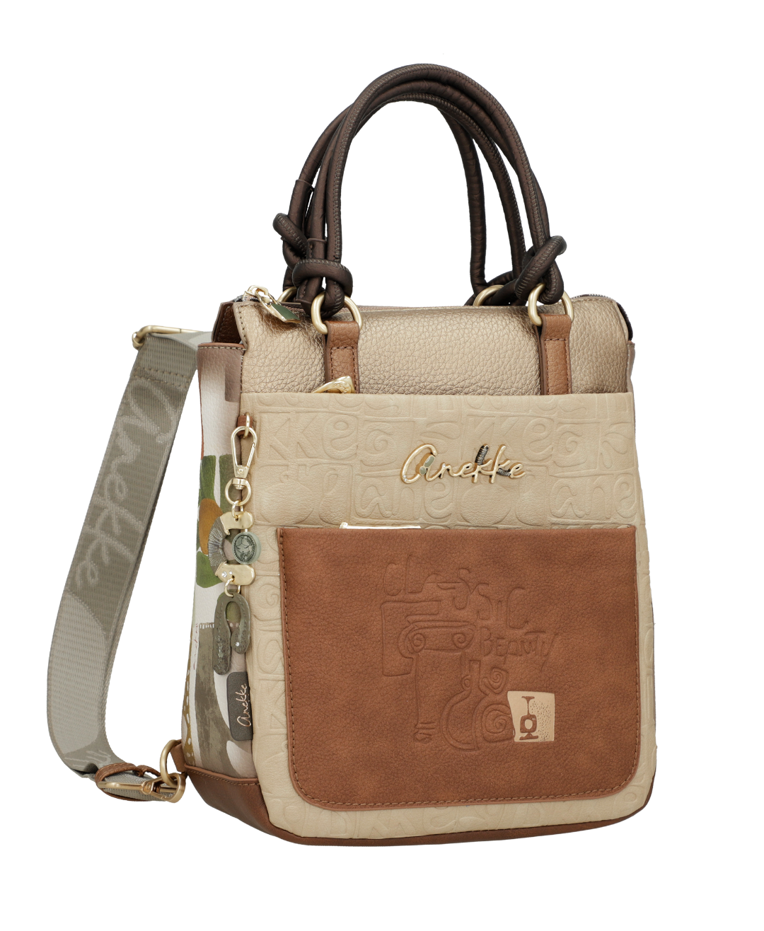 Torebka damska z funkcją plecaka z kolekcji Anekke Muse Amphora SS26 to idealny wybór na co dzień. Wykonana z ekologicznej skóry. Torebka posiada jedną główną komorę zamykaną na zamek błyskawiczny. Wnętrze jest wyściełane kolorową podszewką i zawiera dwie otwarte kieszonki i jedną zamykaną na suwak. Z tyłu znjaduje sie funkcjonalna kieszeń na suwak. Z przodu dwie dodatkowe kieszenie zapinane na suwak. Model posiada odpinane, szerokie, regulowane szelki, które można dopasować do własnych preferencji. Dodatkowo na górze znajduje sie uchwyt do trzymania w ręku.