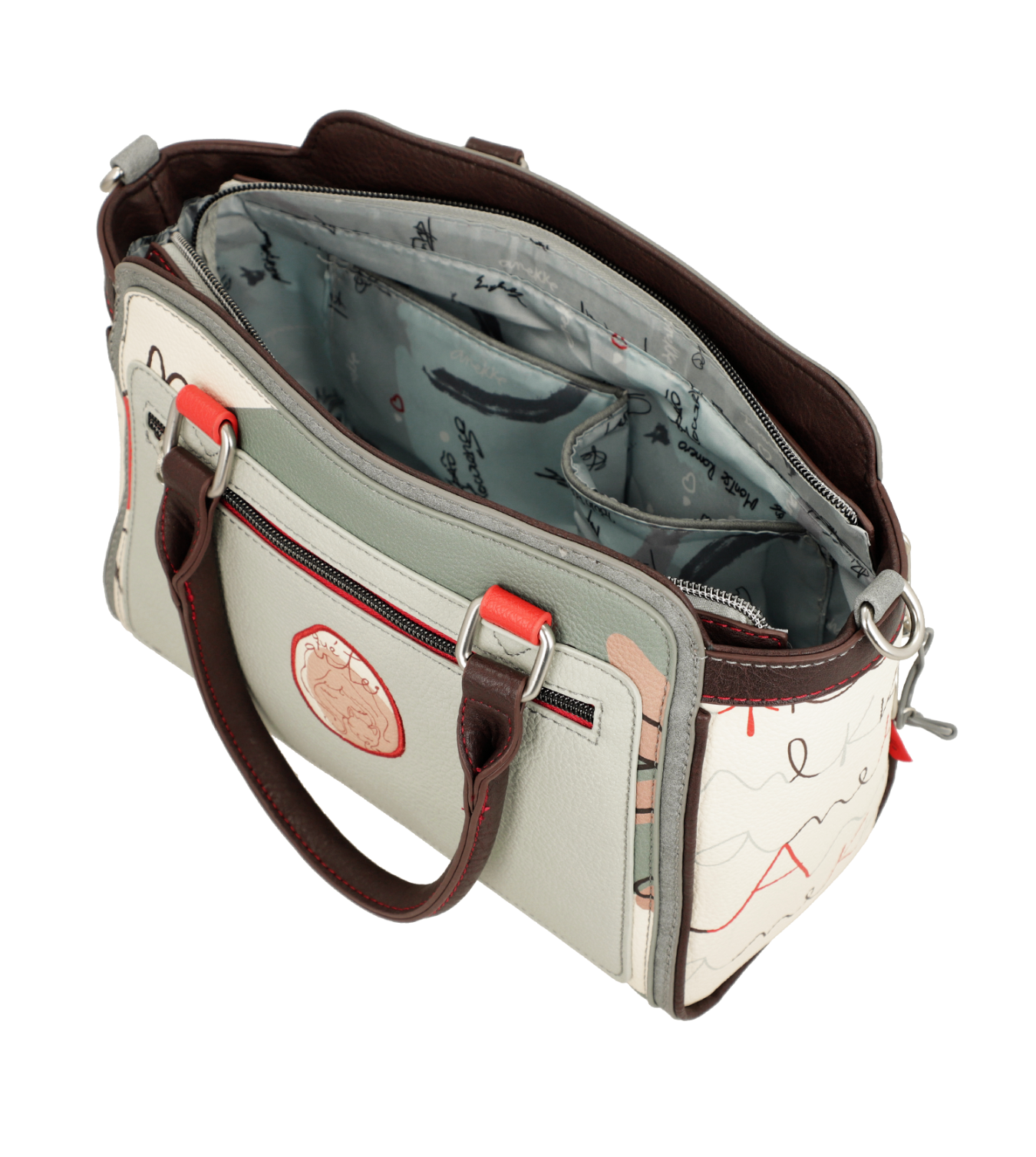 Ta jednokomorowa torebka damska pochodzi z kolekcji Anekke Alma z linii Ole. Torebka wykonana z ekologicznej skóry. Główna komora zamykana na zamek błyskawiczny. Wnętrze wykończone kolorową podszewką z dwiema otwartymi kieszonkami oraz jedną zamykaną na suwak. Z tyłu znajduje sie kieszonka na suwak. Torebka posiada dwa uchwyty do trzymania w ręku lub na przedramieniu. W zestawie dołączony szeroki, regulowany pasek do noszenia na raamieniu.