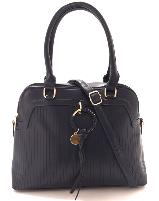 Prezentowany model torebki to doskonałe połączenie elegancji i funkcjonalności. Torebka posiada dwie oddzielne komory zamykane na zamek błyskawiczny, pozwalając na przechowywanie różnorodnych przedmiotów w porządku. W jednej z komór znajduje się na suwak kieszonka oraz dwie mniejsze kieszonki na telefon lub drobiazgi, zapewniające wygodny dostęp. Na rewersie umieszczona jest kieszonka na zamek, idealna do przechowywania przedmiotów, do których chcesz mieć szybki dostęp. Z przodu znajduje się metalowa obrączka z ozdobnym chwostem na której można przywiesić np. ozdobny breloczek. Posiada dwa paski na rękę i odpinany, regulowany pasek na ramię.Usztywniane dno zapewnia stabilność torebki. Spód torebki chronią solidne nóżki ochronne.