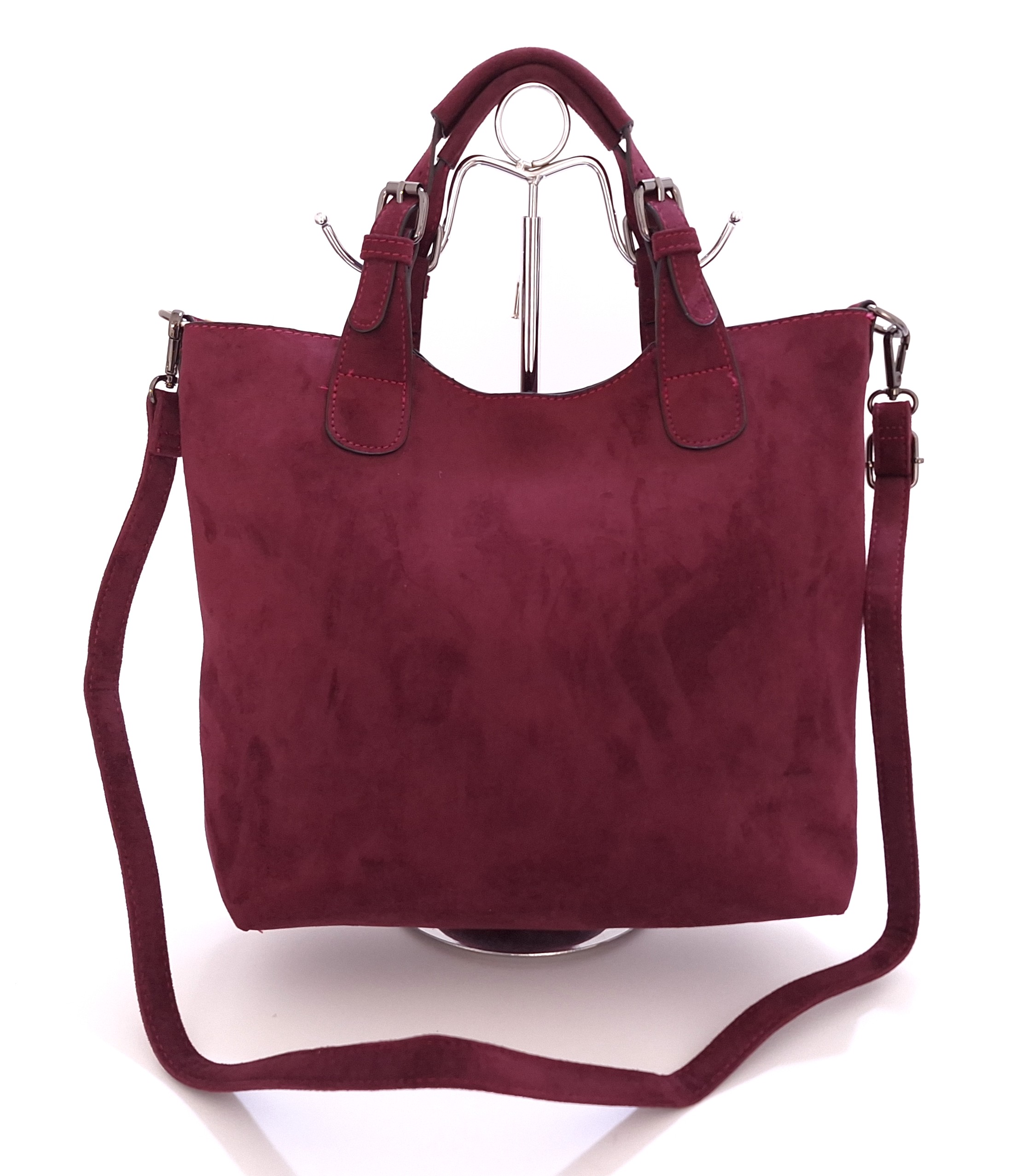 - Pojemna,klasyczna shopperka z eko skóry zamszowej , zamykana na zamek błyskawiczny. Dodatkowo wyposażona w odpinany pasek.