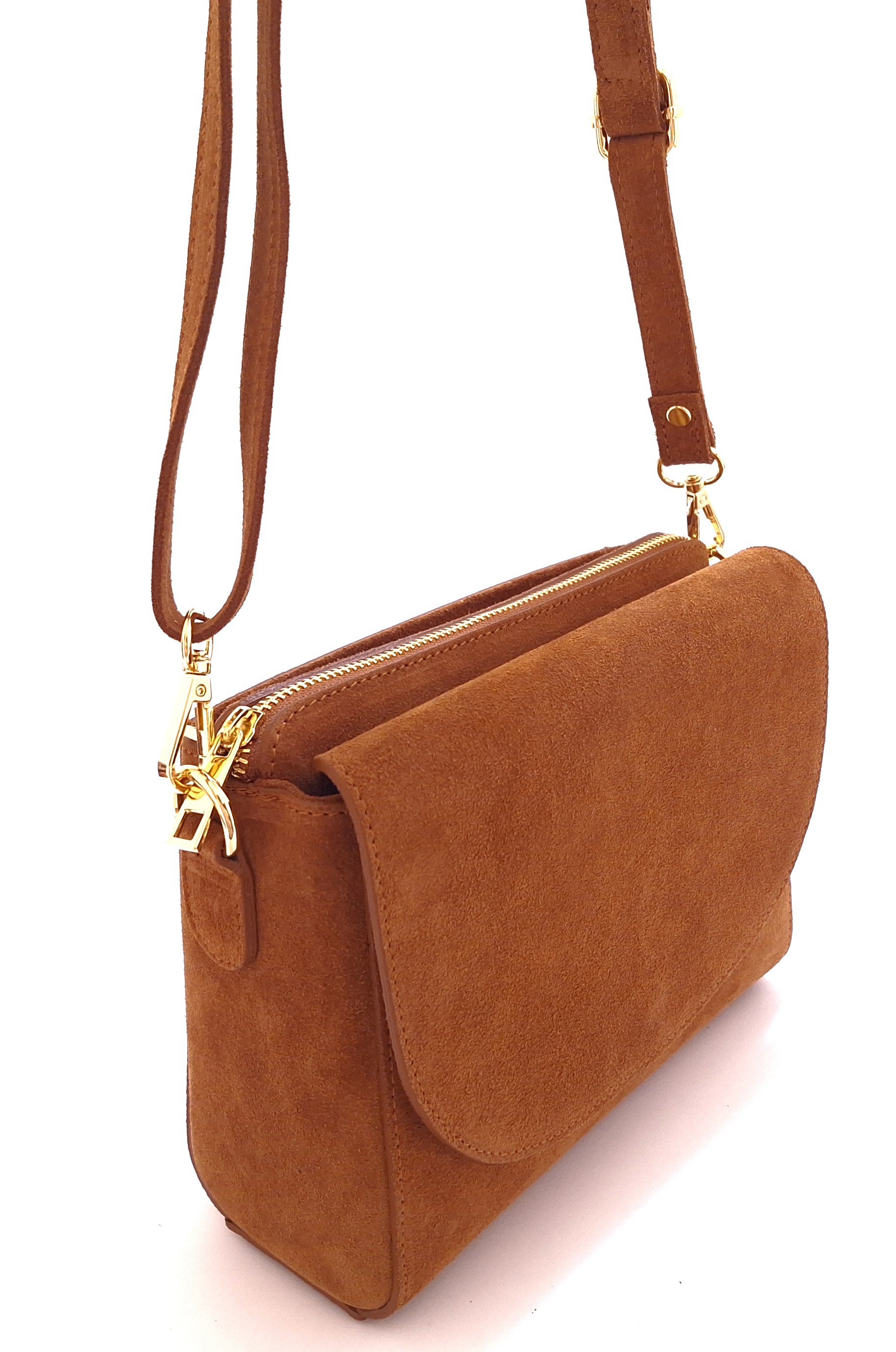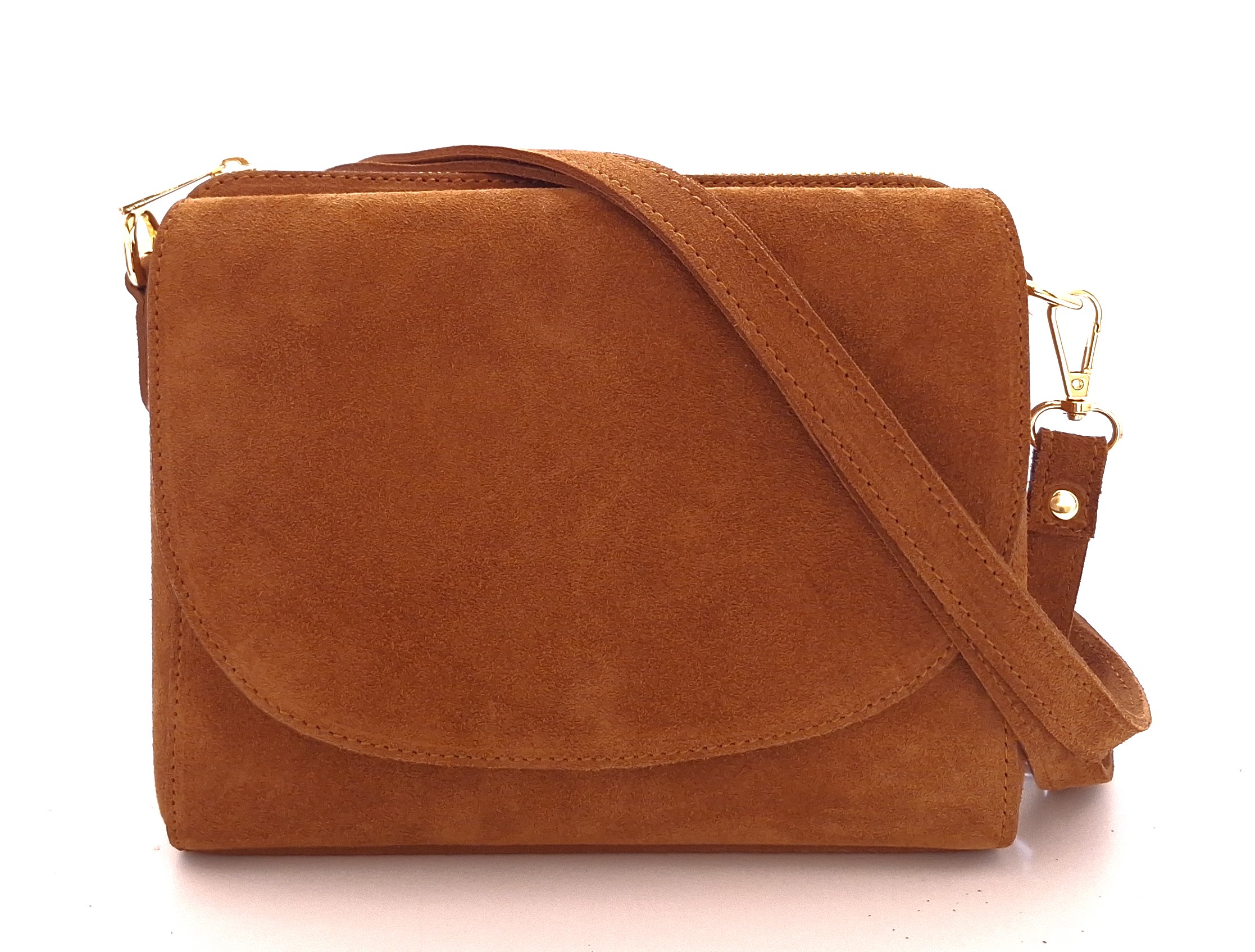 Torebka damska ze skóry zamszowej listonoszka jasny brąz