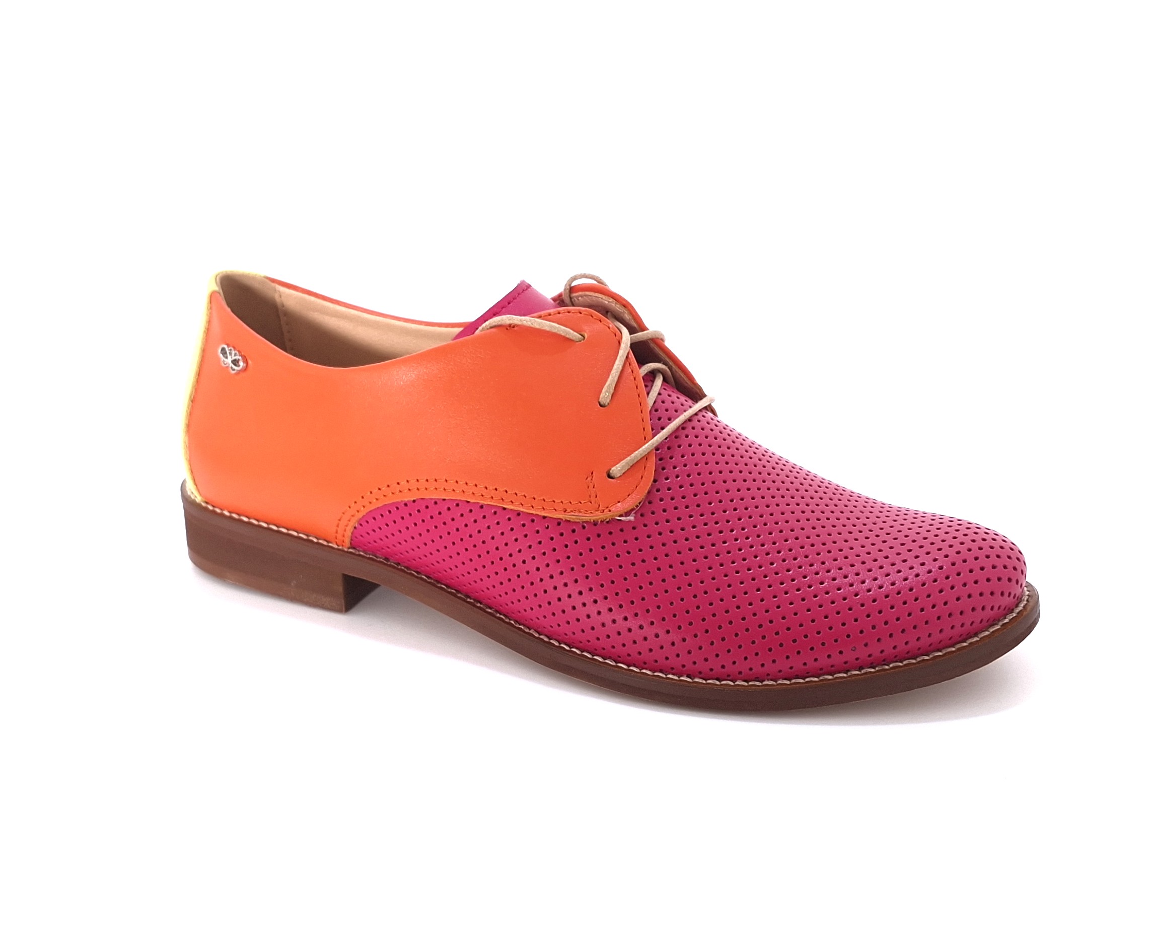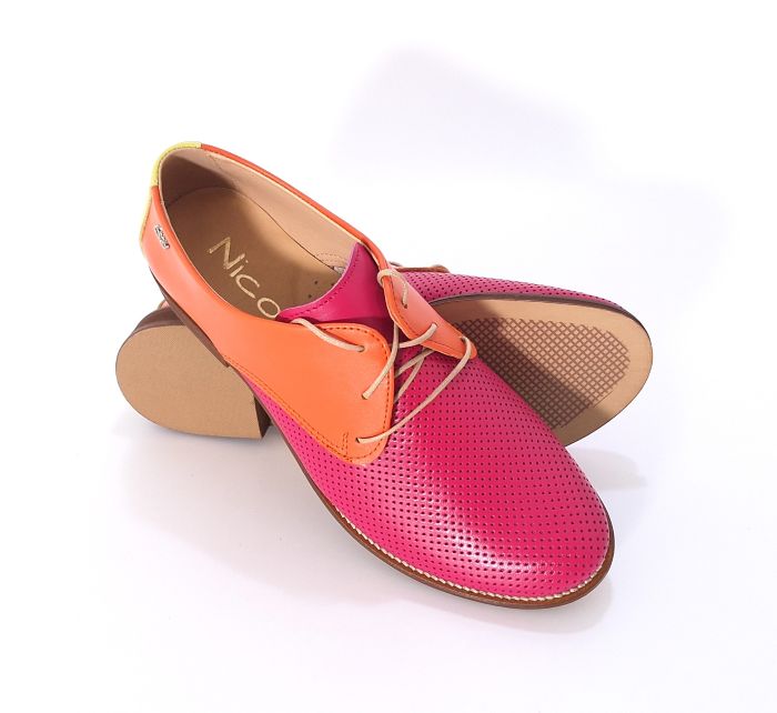 Szukasz stylowych butów, które dodadzą charakteru Twoim stylizacjom? Półbuty damskie typu oxfordy polskiej marki Nicoll to propozycja dla kobiet, które lubią wyróżniać się w tłumie. Wykonane z wysokiej jakości skóry naturalnej, łączą odważne kolory – pomarańcz, róż i jasną zieleń – tworząc niebanalny akcent w każdej stylizacji. Półbuty są sznurowane, co zapewnia odpowiednie dopasowanie do stopy. Niski, szeroki obcas gwarantuje stabilność i komfort podczas chodzenia, jednocześnie dodając subtelnej elegancji. Oxfordy damskie świetnie komponują się zarówno z casualowymi jeansami, jak i eleganckimi sukienkami czy spódnicami.