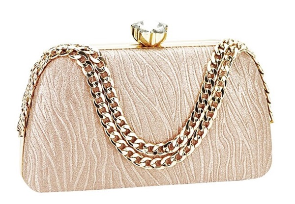 - Złota wieczorowa torebka na do ręki i na ramie, idealna na eleganckie wyjścia.