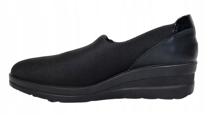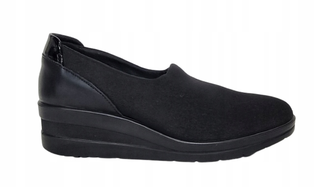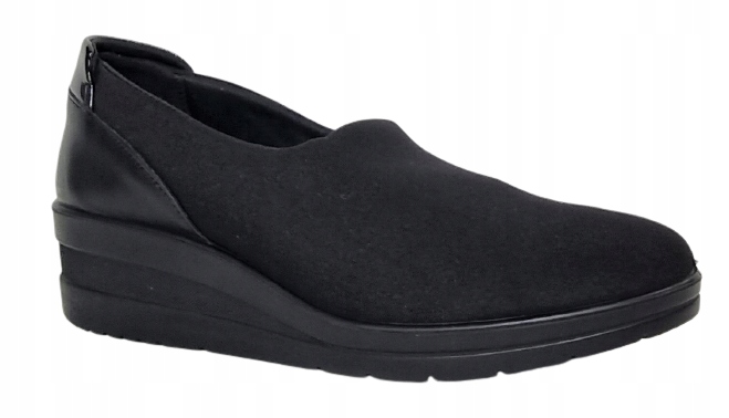 Klasyczne, bardzo wygodne PÓŁBUTY na lekkim KOTURNIE włoskiej marki IMAC. Wierzch wykonany jest z elastycznego materiału (lycra/stretch) w środku skóra naturalna w połączeniu z miłym w dotyku, miękkim materiałem. Elastyczna podeszwa sprawia że krok jest lekki i przyjemny. Wysokość podeszwy pod piętą to około 5 cm.