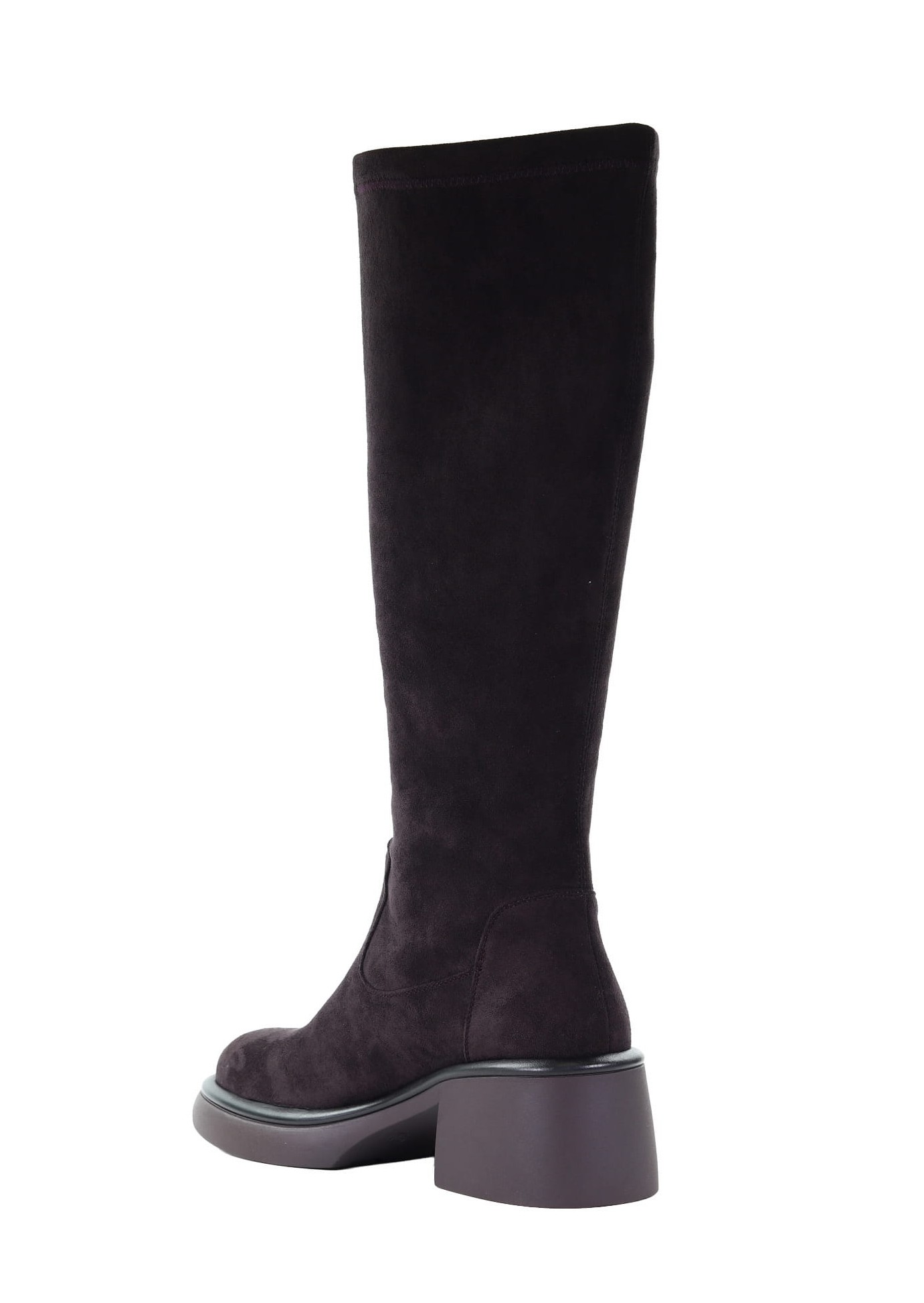 - Damskie kozaki przed kolano z elastycznej tkaniny w kolorze fioletowym. Model lekko ocieplony.