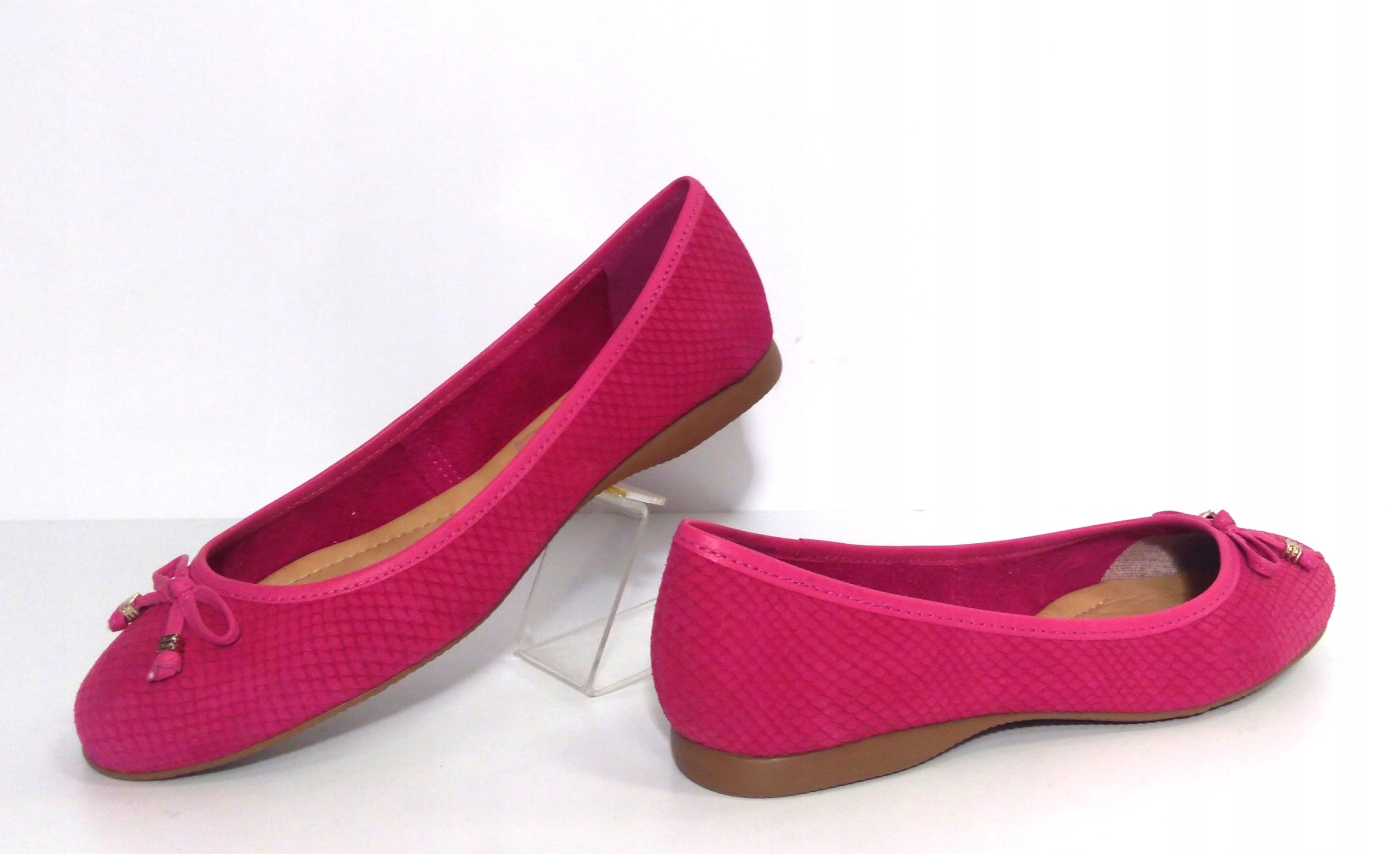 Baleriny posiadają klasyczną, płaską podeszwę: wysokogatunkowe tworzywo. Model zyskuje wdzięk dzięki detalom. Pomimo zmieniających się trendów baleriny pozostają w modzie. Bardzo miękkie i wygodne w pięknym różowym kolorze.