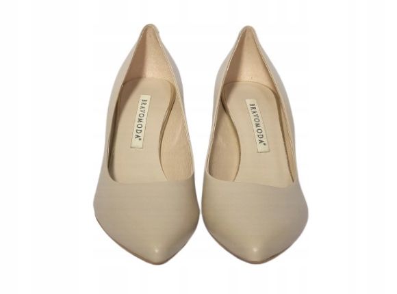Przedstawiamy Państwu czółenka damskie na wysokim obcasie marki BRAVOMODA. Wykonane z wysokiej jakości skóry naturalnej. Wysokość obcasa 7,5 cm. W kolorze beżowym. Dzięki wysokiej stabilnej szpilce wizualnie wydłużają nogi i ulepszają każdy wygląd.