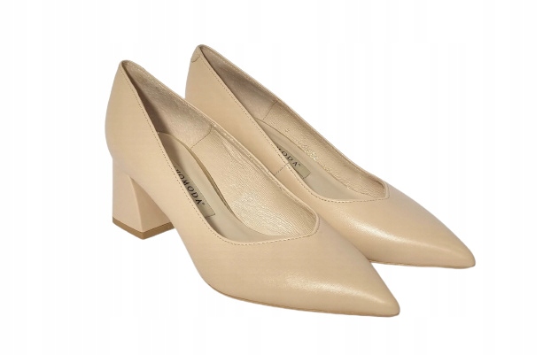 Przedstawiamy Państwu czółenka damskie na obcasie marki BRAVOMODA. Wykonane z wysokiej jakości skóry naturalnej. Wysokość obcasa 6 cm. W kolorze beżowym. Dzięki obcasowi typu klocek wizualnie wydłużają nogi i ulepszają każdy wygląd.