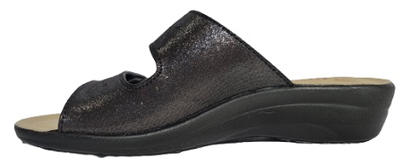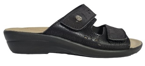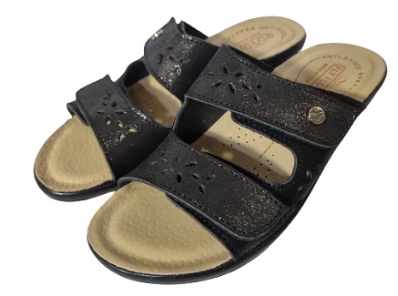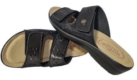 Cholewka wykonana z miękkiej mikrofibry z ciemnym kwiatowym nadrukiem w kolorze czerni, a dzięki regulowanym paskom na rzepy będziesz mieć wygodne i praktyczne dopasowanie na wysokości podbicia.