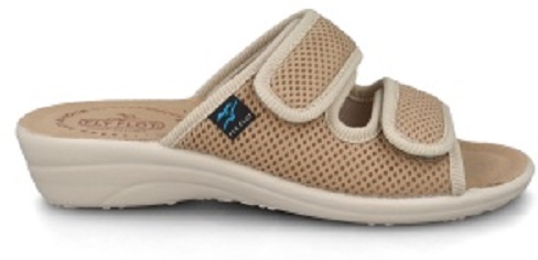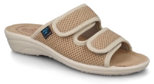 - Wygodne regulowane sandały z materiału dopasowującego się do stopy.