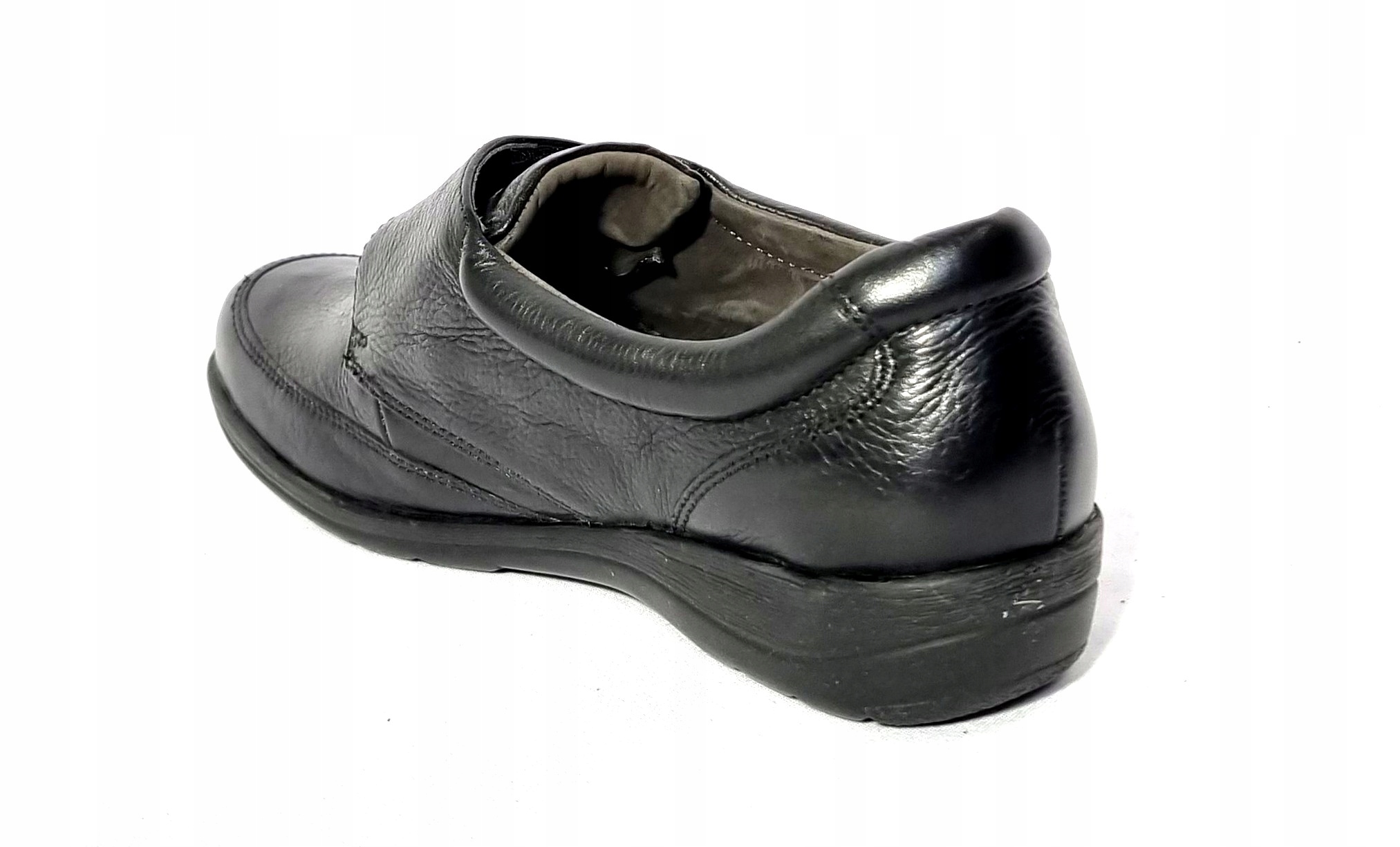 Zostały wykonane ze skóry naturalnej, wkładka też ze skóry naturalnej, gruba podwyższona podeszwa o wysokości 3 cm dodaje komfortu i stabilności. Stopa umiejscawia się wygodnie na miękkiej wkładce. Wkładka jest wyjmowana. Tęgość H. Zapinane na rzepy.