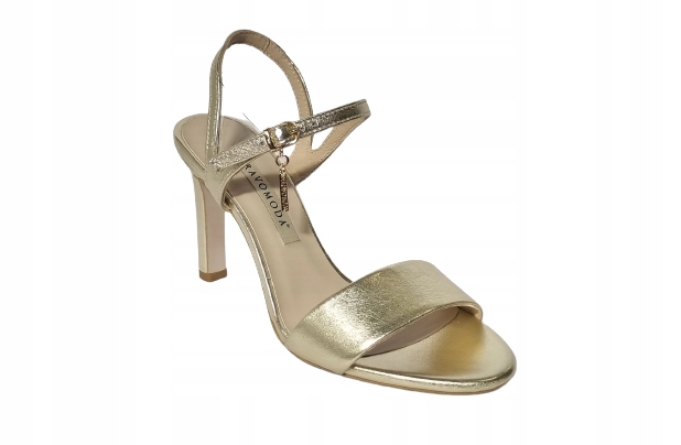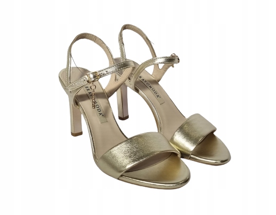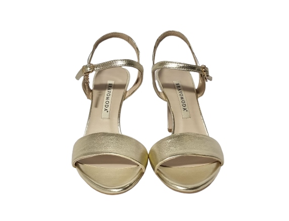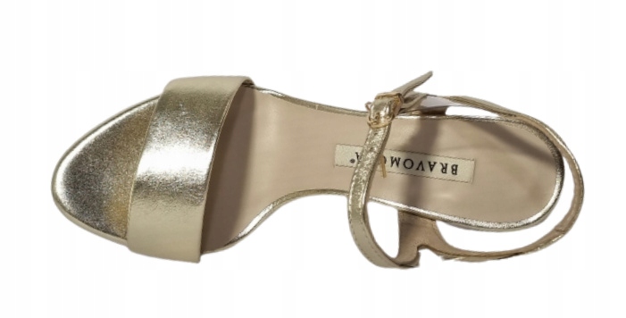 Przedstawiamy Państwu sandały damskie na wysokim obcasie marki BRAVOMODA. Wykonane z wysokiej jakości skóry naturalnej. Wysokość obcasa 9cm. W kolorze złotym. Antypoślizgowa podeszwa. Dzięki wysokiej stabilnej szpilce wizualnie wydłużają nogi i ulepszają każdy wygląd.