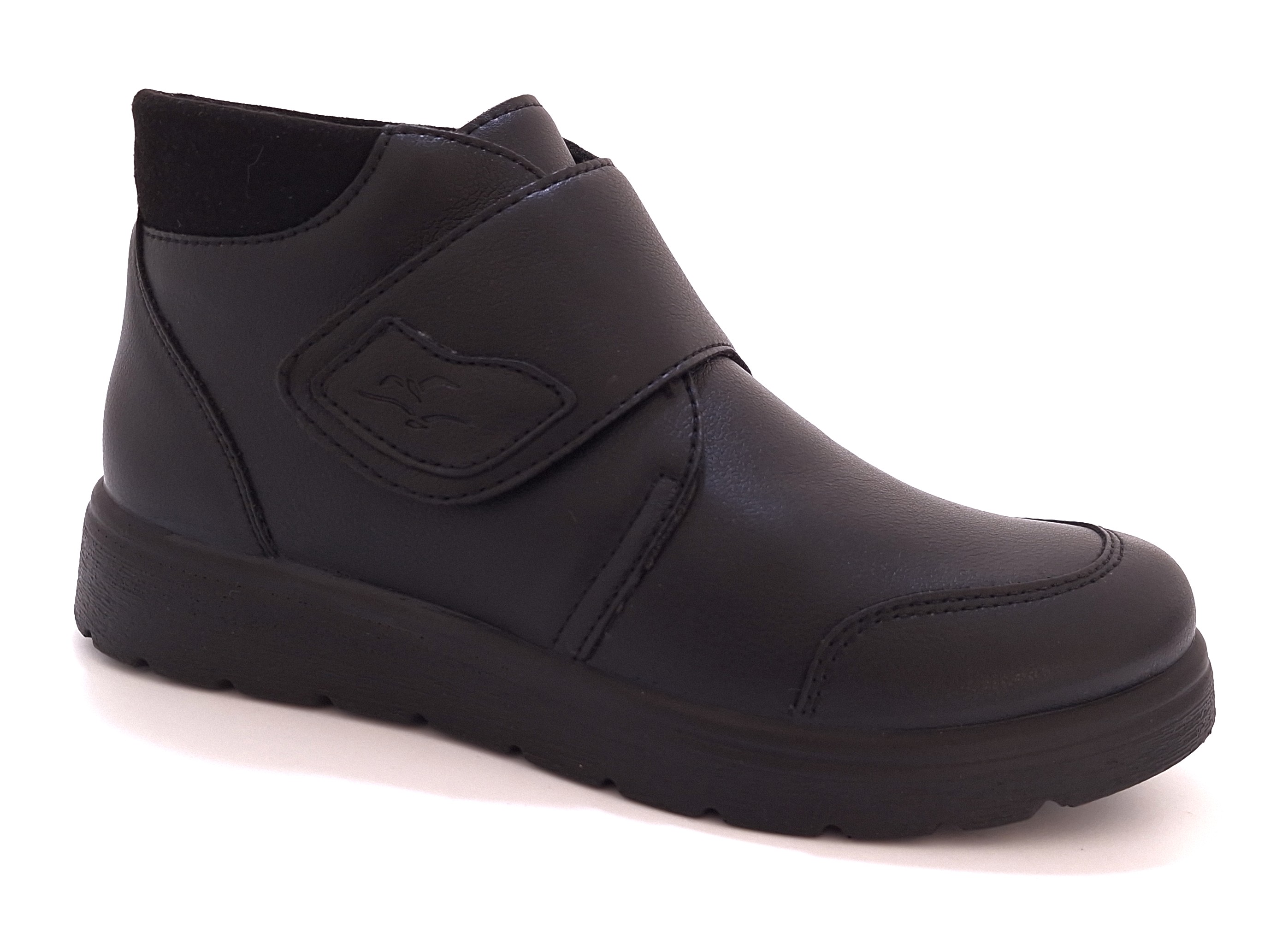 • Komfortowe trzewiki damskie Fly Flot na rzepy w kolorze czarnym. Lekko ocieplane, z wkładką Memory Foam i podeszwą Anti-Shock – idealne dla wrażliwych stóp, haluksów i szerszej tęgości.