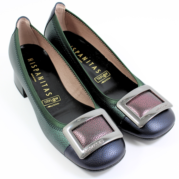 Zielone czółenka z klamrą na niskim obcasie Hispanitas CHI243673 r39
