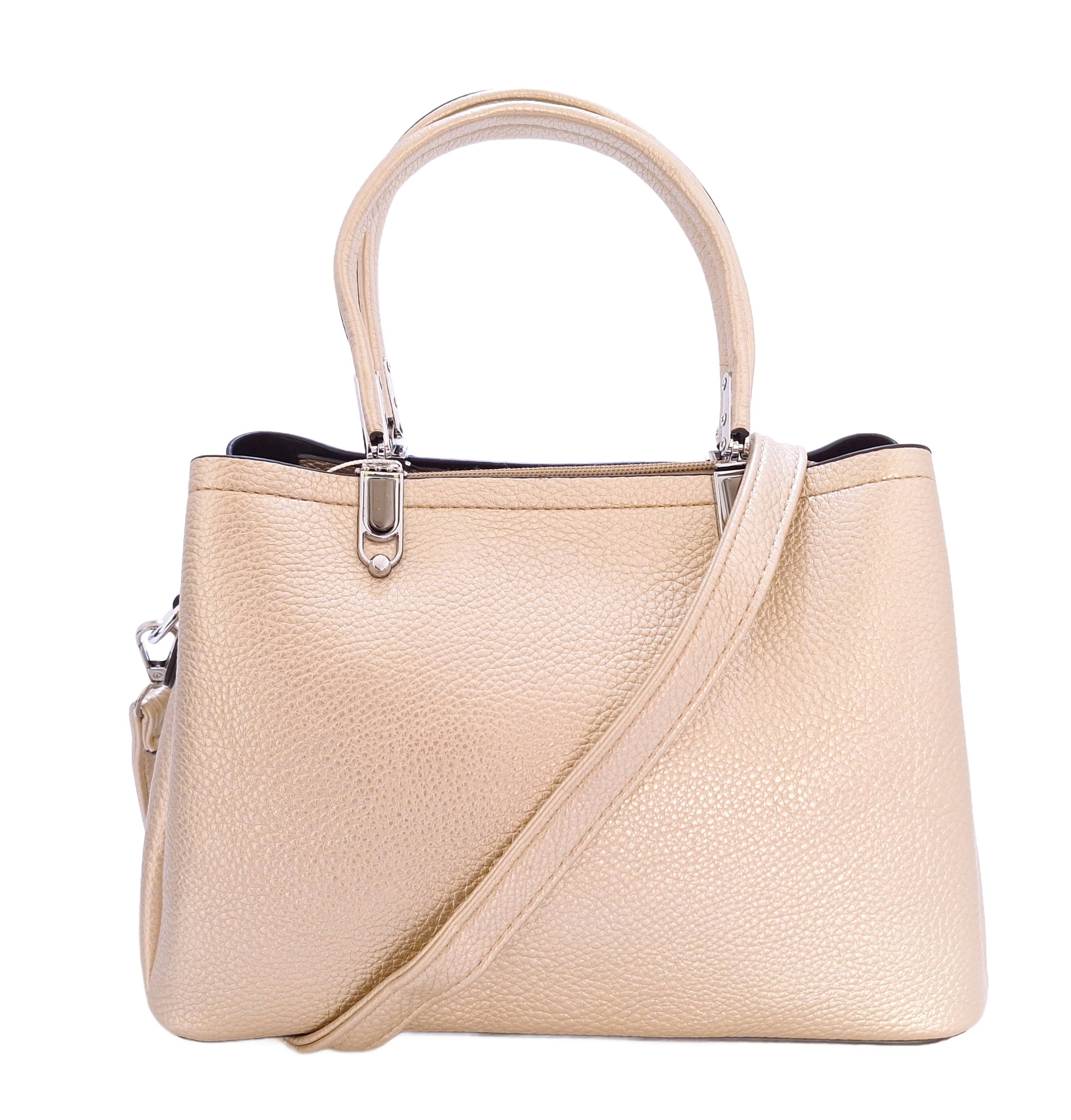 - Złota połyskująca torebka damska wykonana z ekologicznej skóry.Model trzykomorowy.