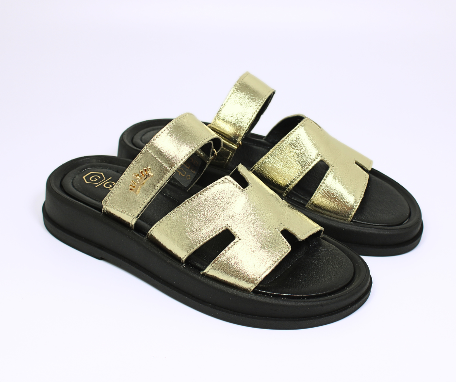 Odkryj elegancję połączoną z komfortem, dzięki klapkom marki Gamis. Wykonane z wysokiej jakości foliowanej skóry naturalnej, zapewniają doskonały komfort użytkowania i trwałość na wiele sezonów. Atrakcyjny design klapek przyciąga wzrok i nadaje charakteru każdej stylizacji. Zapięcie na rzep ułatwia szybkie dopasowanie butów do indywidualnych potrzeb. Podszewka ze skóry zapewnia miękkość i komfort, a miękka skórzana wkładka gwarantuje wygodę nawet podczas długich spacerów. Platforma dodaje klapakom nie tylko kilku centymetrów wysokości, ale także zapewnia stabilność i wygodę podczas chodzenia. Dzięki temu możesz cieszyć się komfortem przez cały dzień. Casualowy charakter  butów sprawia, że pasują zarówno do jeansów, jak i letnich sukienek. Będą idealnym dopełnieniem każdej stylizacji, dodając jej nutkę szyku i elegancji. Złote klapki na platformie to must-have tego lata!