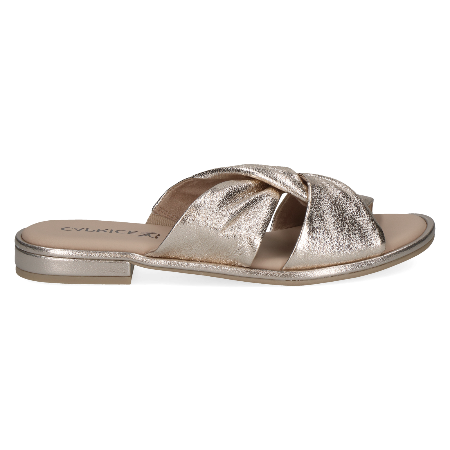Złote skórzane klapki damskie na płaskiej podeszwie Caprice 27100 r.39