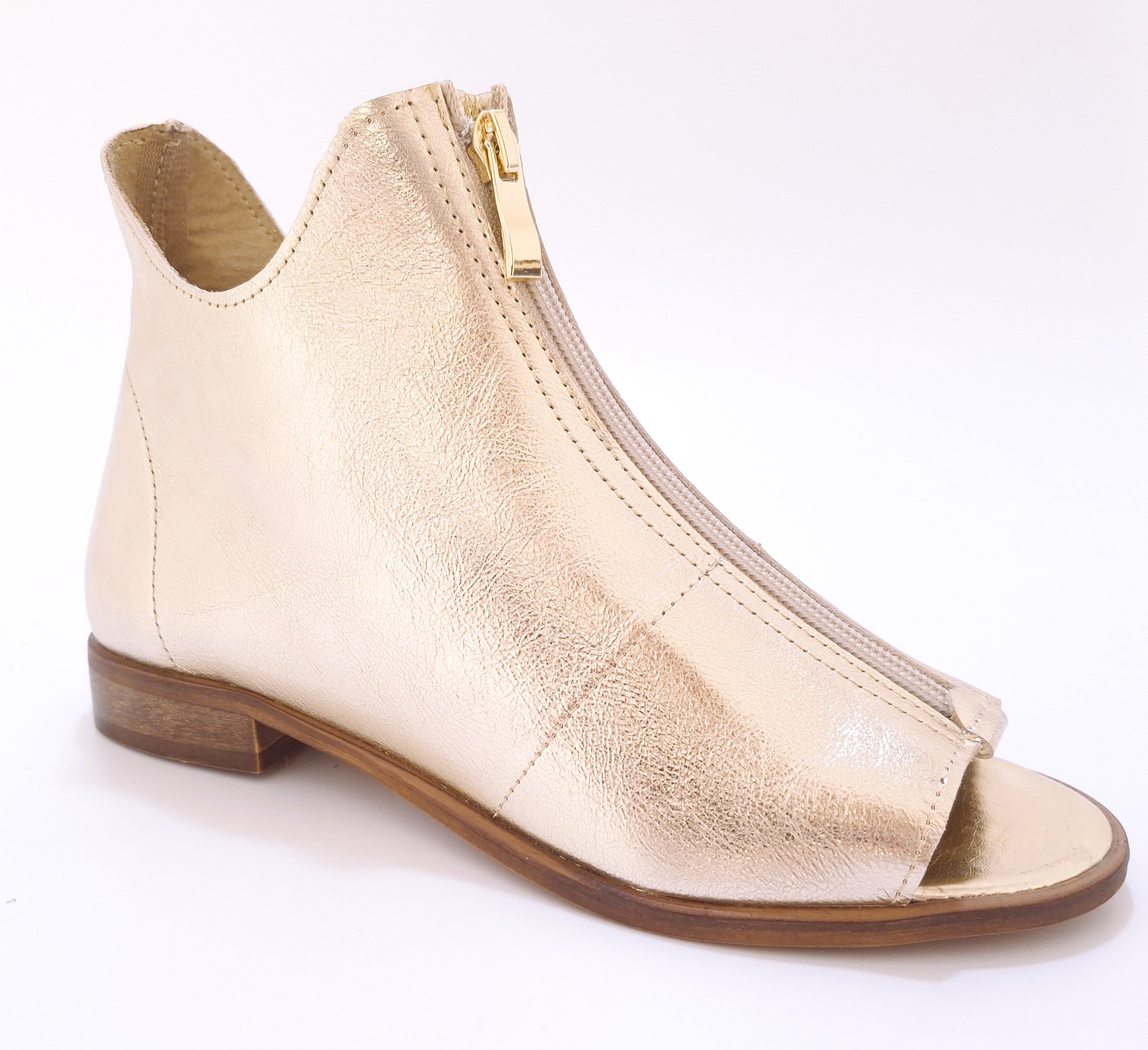 Złote sandały damskie z zabudowaną cholewką marki Amparo Preston to połączenie ponadczasowego designu, wygody i elegancji. Wykonane z wysokiej jakości naturalnej skóry licowej. Złoty kolor doskonale wpisuje się w letnie trendy i doda blasku każdej stylizacji. Zabudowana cholewka została wyposażona w praktyczny zamek, który nie tylko stanowi ciekawy detal, ale również ułatwia szybkie zakładanie i zdejmowanie obuwia. Zaokrąglone, otwarte noski nadają butom lekkości i letniego charakteru. Płaska podeszwa zapewnia komfort noszenia przez cały dzień